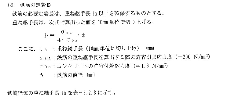 以下の計算でla=31.25φとなる長さを10mm単位で切り上げて継手長を設定します。