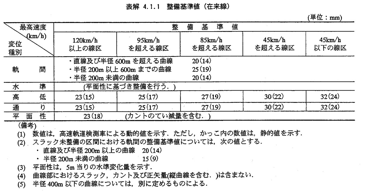 - 静定構造物の場合は軌道変位の基準値を使用。