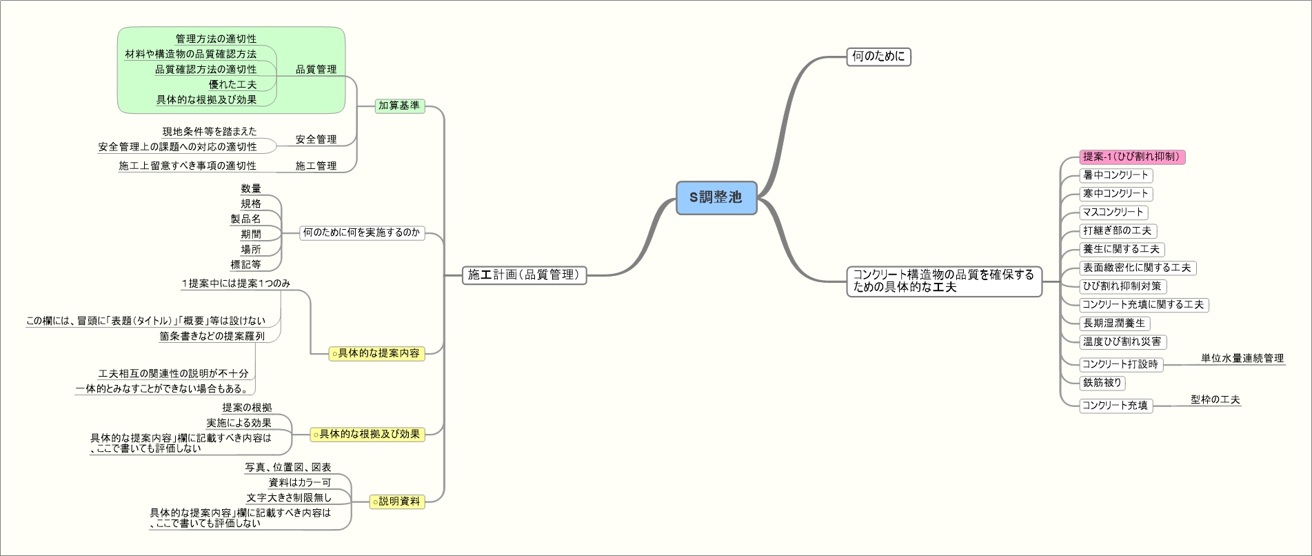 マインドマップは、条件や課題を整理したり、新しい発想を考えたりする場合に有効なツールです。※使用ソフト:MaindManeger