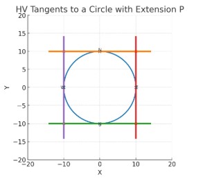 ;; 選択円に外接する「水平2本・鉛直2本」を作図し、