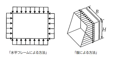 対象となる人孔側壁がどのような計算方法で設計されているかを推定する必要があります。矩形人孔の場合、「水平フレームによる方法」または「版による方法」で計算されることが一般的です。どちらの方法が採用されているかは、既設の人孔配筋図を基に推定します。