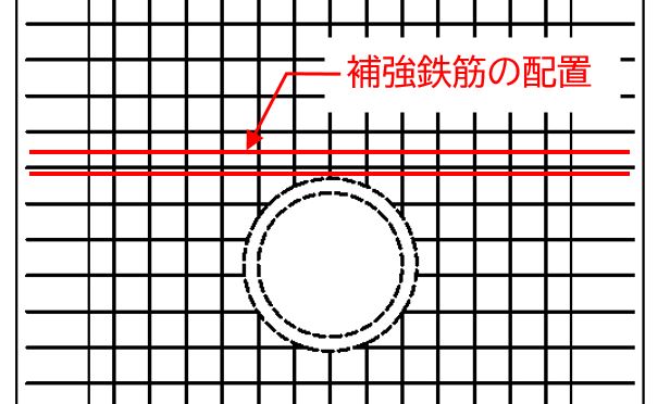例えば、開口を設けた場合に部材の許容応力が超過するため、その対策として補強鉄筋を配置するケースが考えられます。