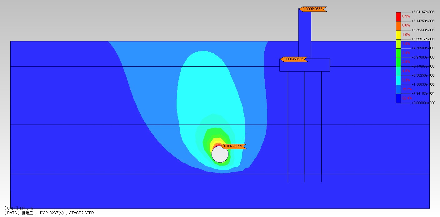 橋脚下部工の横を推進する場合に、基礎杭の存在がどの程度影響するか検討しました。