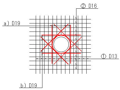 基本的には・・開口により切断した鉄筋と同じ断面積の鉄筋を配置することが必要となります。