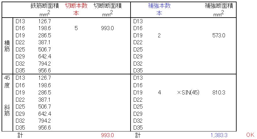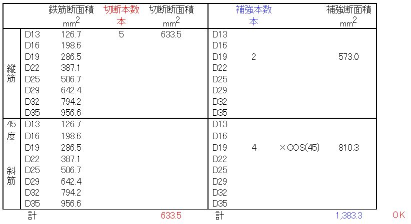 以下の計算のように補強鉄筋を配置することになります